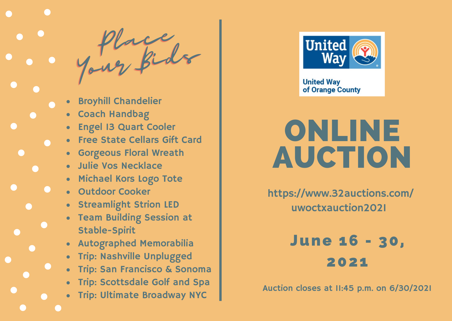 Our Online Auction is live! You can see the twenty great items online at your convenience by clicking the image below. Auction closes at 11:45 p.m. on June 30, 2021.